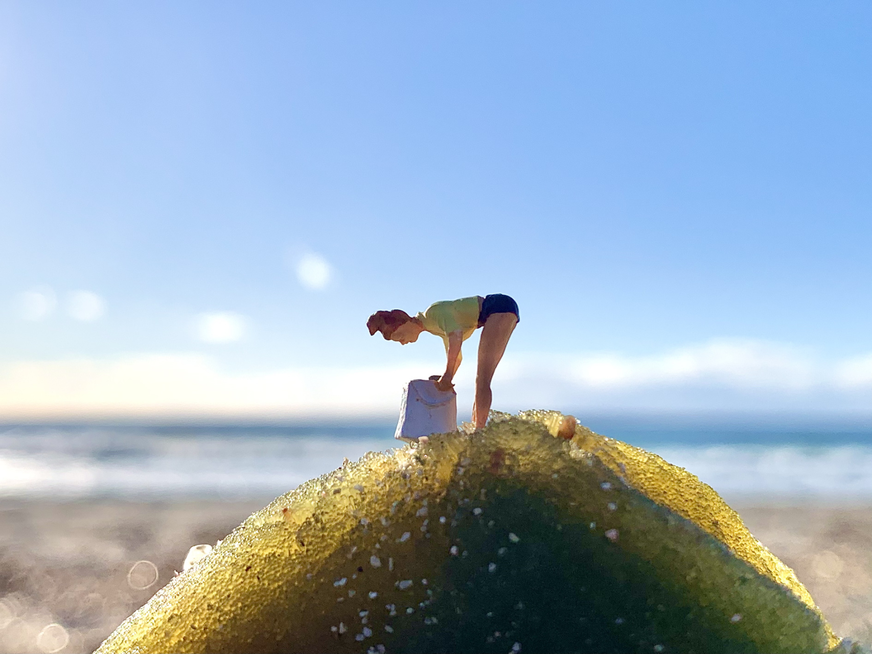 In her figurative approach to drawing and her narrative approach to video, she tends towards surrealist and dreamlike imagery, and through installations composed of miniature figurines, she links the human body to landscapes, playing on scales of proportion to create a sense of unreality, where humor sometimes blends with melancholy in a symbolic representation of the strength and fragility of the human being.